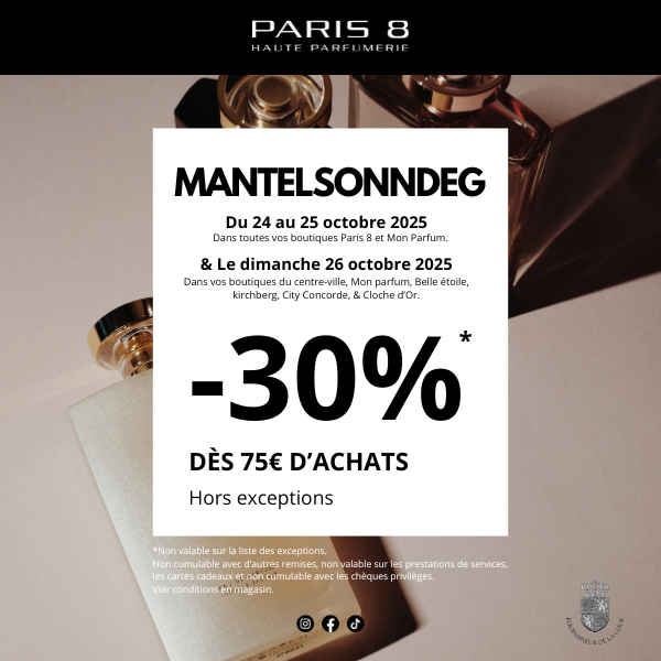 Du 24/10 au 26/10Trois jours pour craquer sans culpabiliser : -30% dès 75€ d’achats.